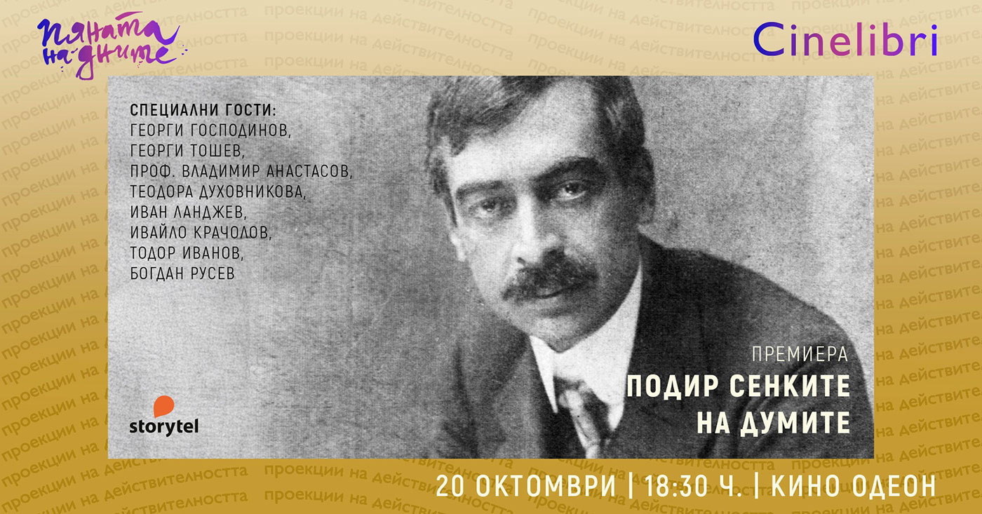 Програмата включва и документалния филм на Ема Константинова „Подир сенките на думите“, който търси отговор на въпроса дали образът на един от най-нежните български лирици е митологизиран. Филмът се вглежда в интимния свят на поета, за да се опита да разбере пламенната крайност на любовта му, патоса му на революционер и родолюбец, психологическата дълбочина и екзистенциалната проблематичност на поетичните му текстове. В това проникновено и вълнуващо колективно изследване участие ще вземат проф. Владимир Анастасов, Теодора Духовникова, Георги Господинов, Георги Тошев, Иван Ланджев, Ивайло Крачолов и председателят на фондация „Яворов” Тодор Иванов. Тъй като билетите за събитието на 20 октомври вече са изчерпани, организаторите обявяват две допълнителни прожекции на филма в Casa Libri – на 27 октомври от 18:30 ч. и на 1 ноември от 19:30 ч.